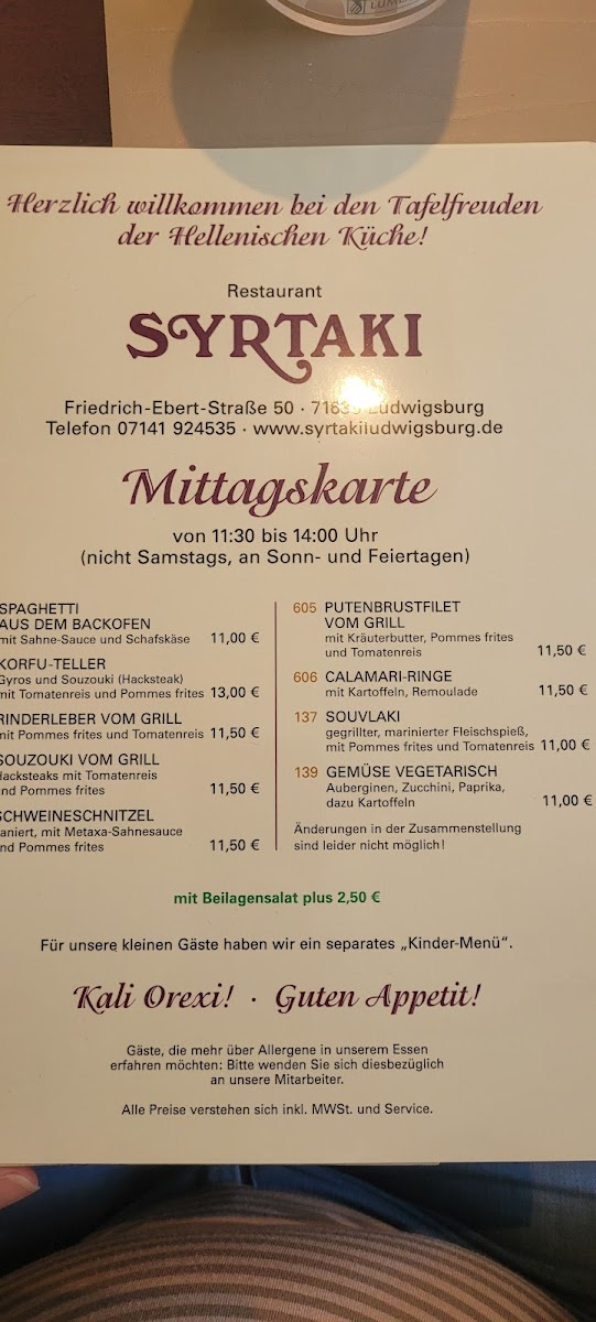 Welcome to Restaurant Syrtaki Ludwigsburg, a culinary gem nestled in the heart of Ludwigsburg. Located at Friedrich-Ebert-Straße 50, this restaurant is celebrated for its authentic Greek cuisine and warm hospitality. As soon as you step in, the inviting ambience sets the stage for a delightful dining experience.